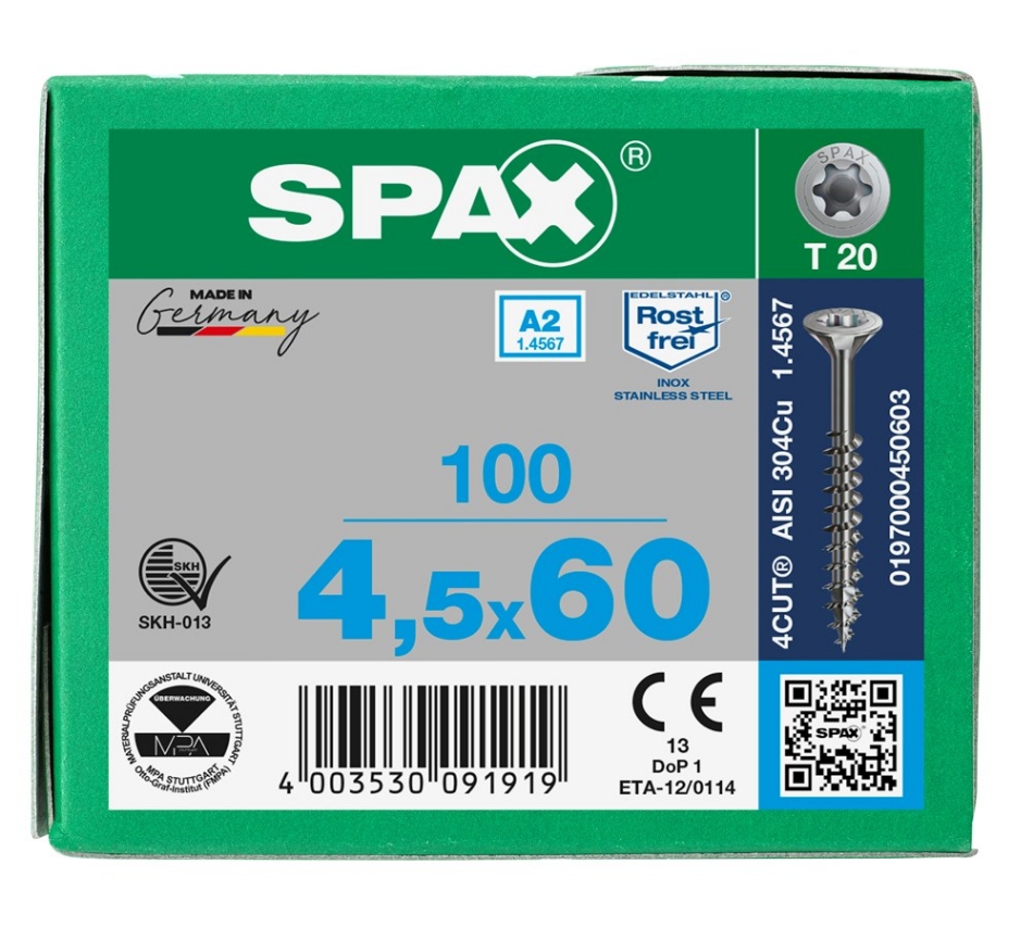 SPAX Spaanplaatschroef verzonken kop T-STAR plus A2 4,5x60mm