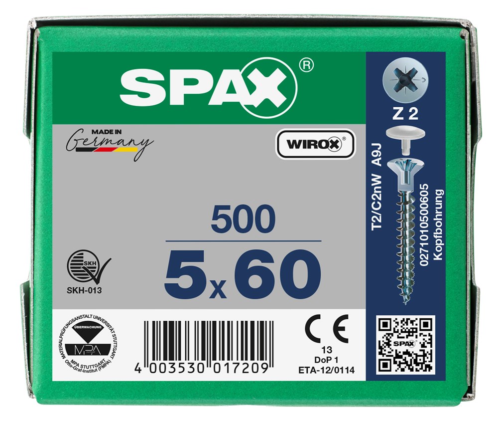 SPAX Spiegelschroef, 5.0 x 60 mm, gegalvaniseerd, verzinkt