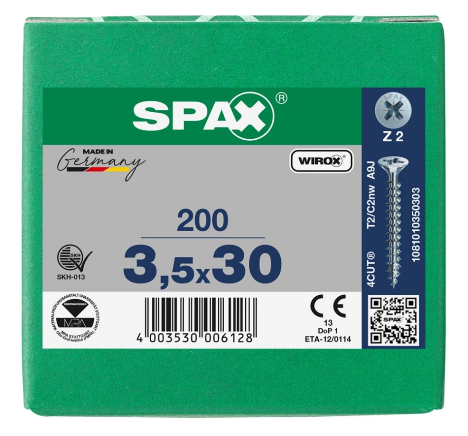 SPAX platkop, kruiskop Z, 4CUT, MULTI-kop, volledig schroefdraad, WIROX A3J