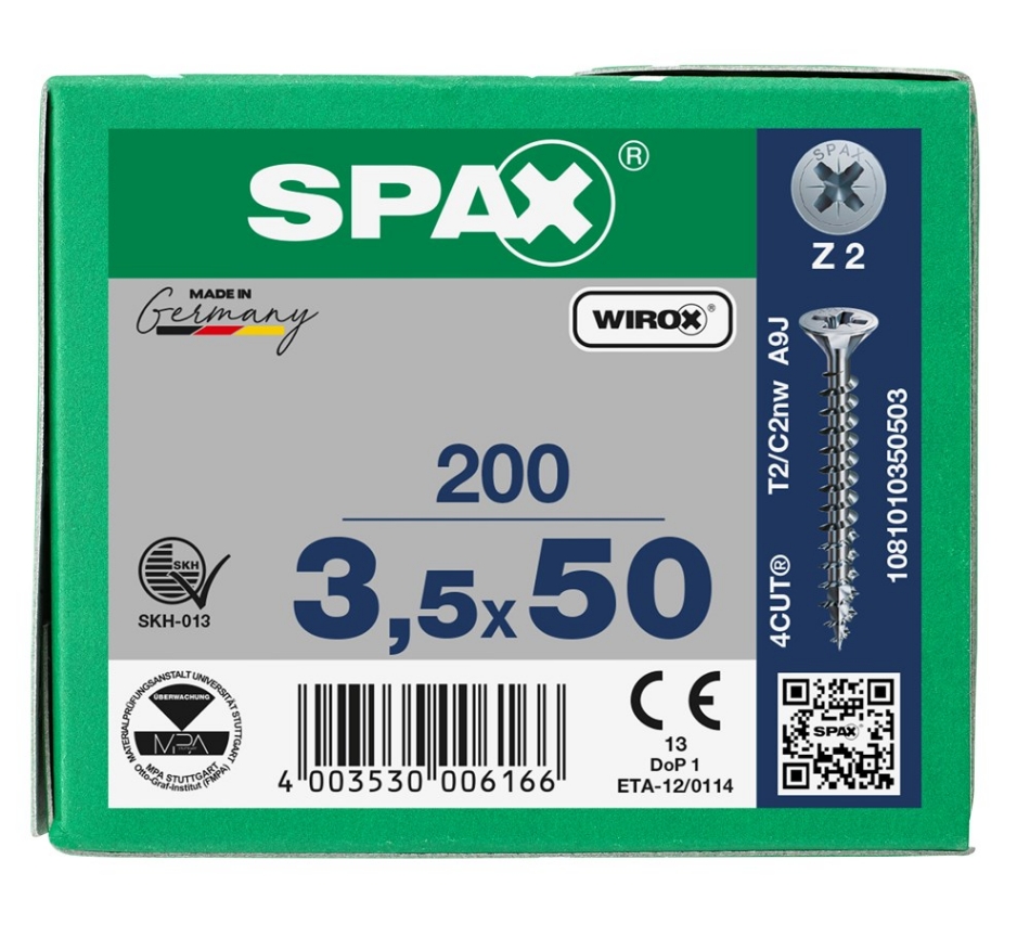 SPAX Spaanplaatschroef, 3.5 x 50 mm, platkop, gegalvaniseerd, verzinkt