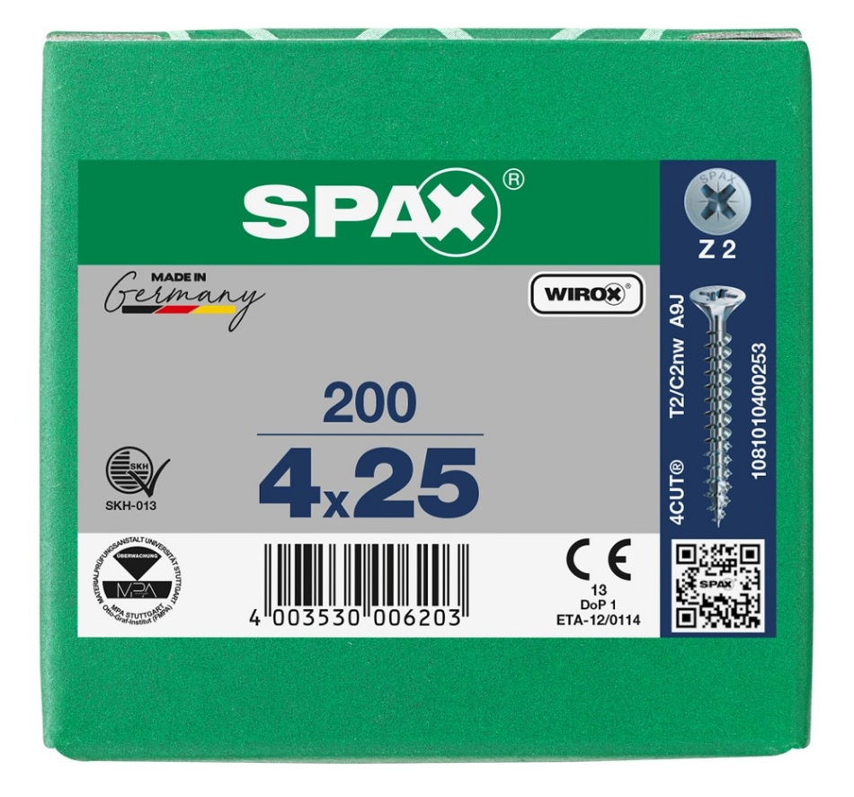 SPAX platkop, kruiskop Z, 4CUT, MULTI-kop, volledig schroefdraad, WIROX A3J