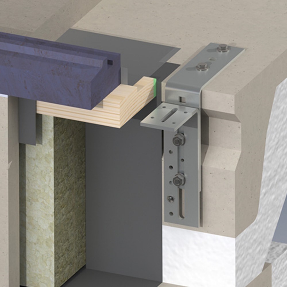 Hoekanker met open sleuf om in combinatie met een vloerhoek en slotbouten een verstelbare kozijn- vloerverbinding te realiseren. Dit hoekanker is geproduceerd uit 60x6 mm sendzimir verzinkt staal.