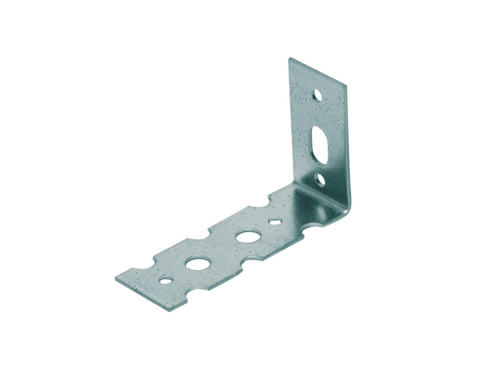 Lijm/montage anker (hoek met één been) voor het koppelen van haaks op elkaar aansluitende gelijmde kalkzandsteen muren. Dit wandanker wordt ook toegepast bij aansluitingen van vooraf gestelde houten binnen(deur)kozijnen.