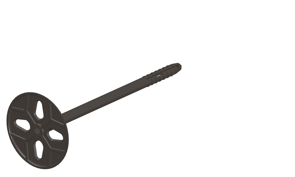 Isolatieplug, Ø 8mm, zwart met vaste schotel, voor montage van harde en zachte spouwisolatie in combinatie met UNI-slagspouwankers Ø 4 mm in een binnenmuur van beton, kalkzandsteen of volle baksteen. Leverbaar in 10 verschillende lengtematen, voor isolatiediktes van 40 t/m 240 mm.