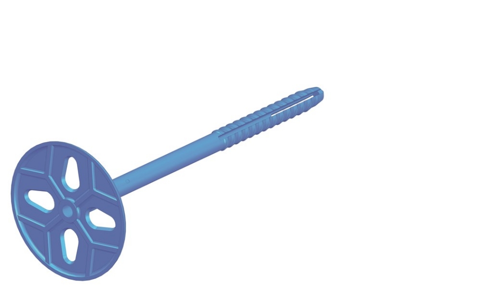 Isolatieplug, Ø 8mm, blauw met vaste schotel voor montage van harde en zachte spouwisolatie in combinatie met UNI-indraaispouwankers Ø 4 mm in een binnenmuur van GEPERFOREERDE KERAMISCHE STEEN. Leverbaar in 7 verschillende lengtematen, voor isolatiediktes van 60 t/m 200 mm.