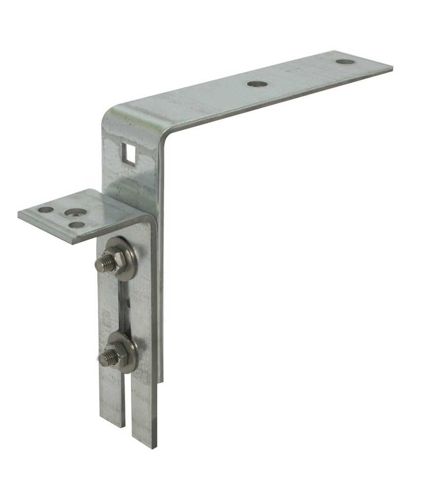 Verstelbare kozijn- vloerverbinding bestaande uit een vloerhoek, een hoekanker en een set slotbouten. De vloerhoek wordt gemonteerd aan de vloerrand. Het hoekanker wordt verstelbaar aan de vloerhoek bevestigd t.b.v. de onderdorpelmontage van kozijnen of puien. Door het afgestemde gatenpatroon kan de hoek na het stellen extra tegen afschuiving gefixeerd worden. Kozijnstelhoeken zijn leverbaar in verschillende afmetingen, uitvoeringen en oppervlaktebehandelingen.