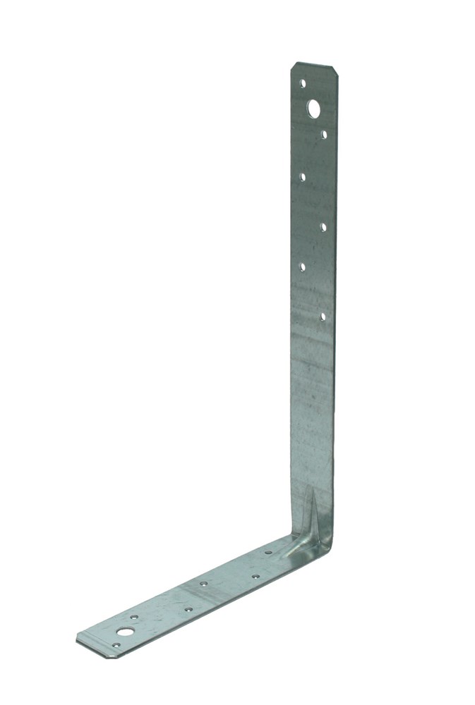 Haaks gezet hoekanker, versterkt met een ril, uit sendzimir verzinkt bandstaal (30 x 2 mm) om balken van een (plat) dak of verdiepingsvloer (tegen opwaaien) te verbinden met de dragende (binnen)muur.