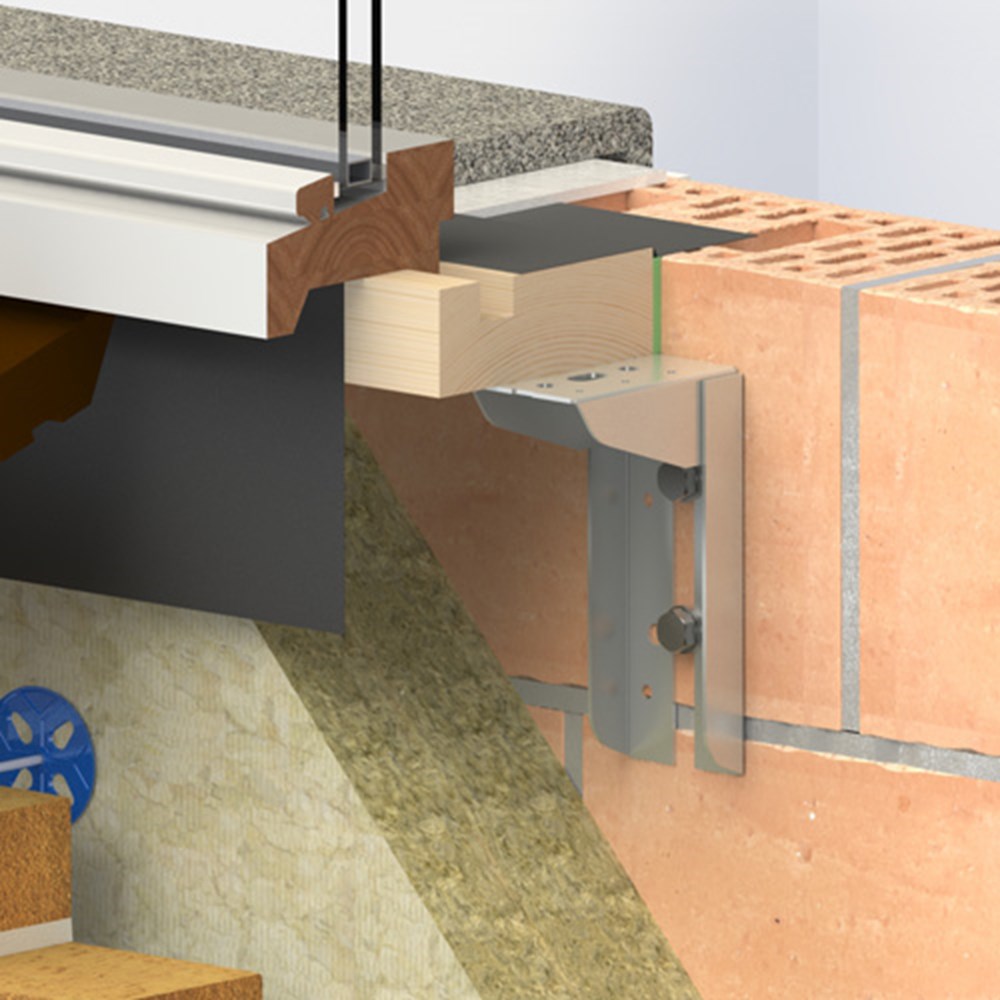 Hoekanker, speciaal ontworpen met omgezette zijkanten waardoor extra stevigheid wordt verkregen. Geschikt voor de verankering van zware kozijnen. Deze hoekankers worden geproduceerd uit 65 x 2 mm sendzimir verzinkt staal en zijn belastbaar tot 250 kg per hoekanker.