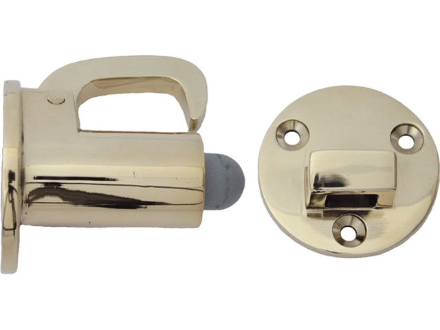 Messing. Met rubberen buffer. Vangplaat geheel gegoten. Afmeting 60 mm. Volgens DIN 81406 A.