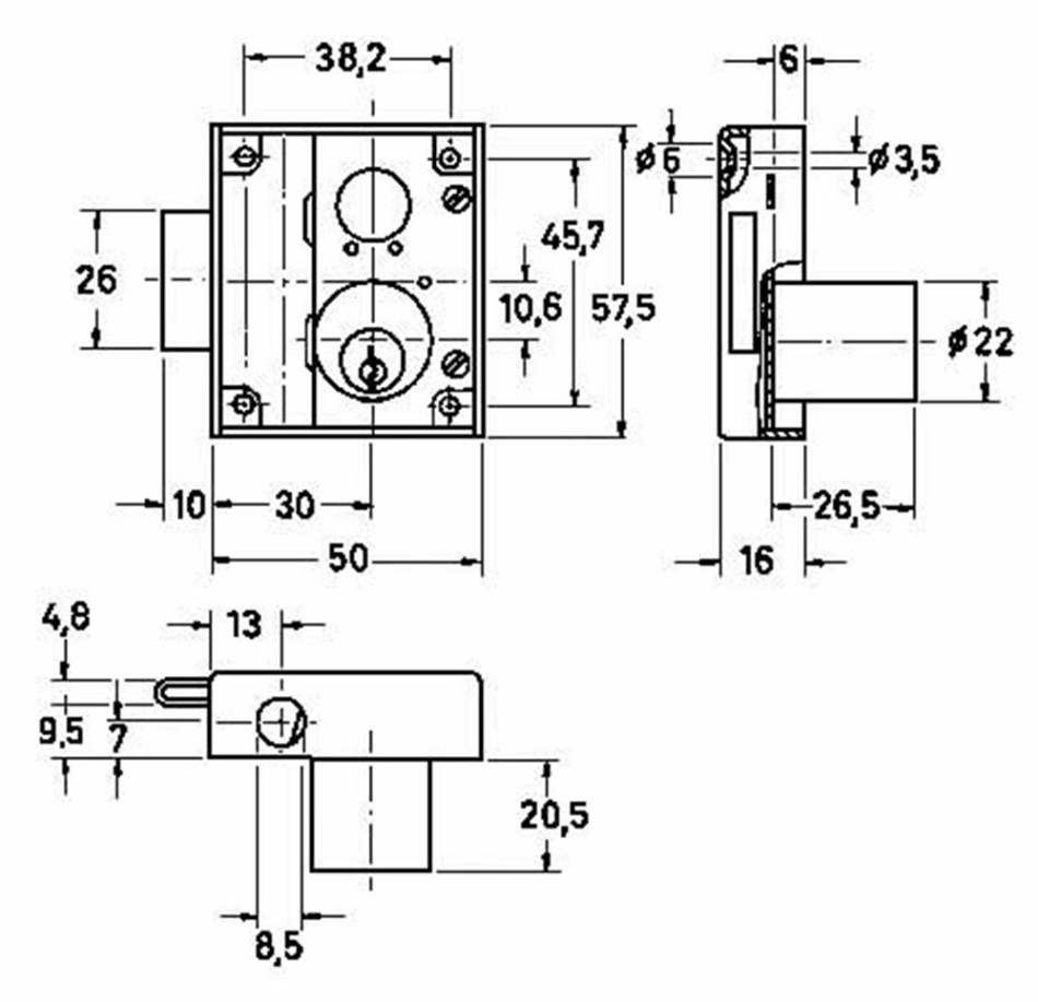 Draaistang opleg cilinder meubelslot, zonder stang.