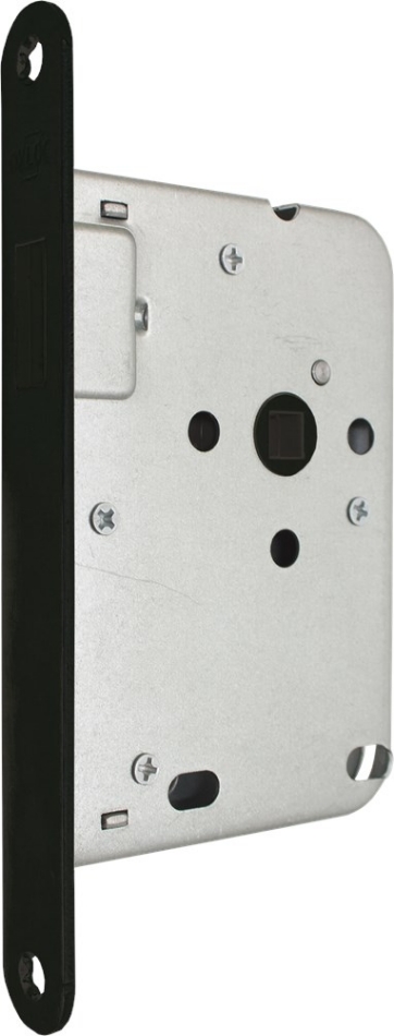 Magneet serie insteekslot, geschikt voor binnendeuren in woningbouw. Stalen dagschoot, dat naar buiten getrokken wordt door bij behorende magnetische sluitplaat, met krukgat 8 mm. Dichte verzinkte slotkast 117x80x17 mm. Voorzien van afgeronde voorplaat 174x20x2,75 mm.