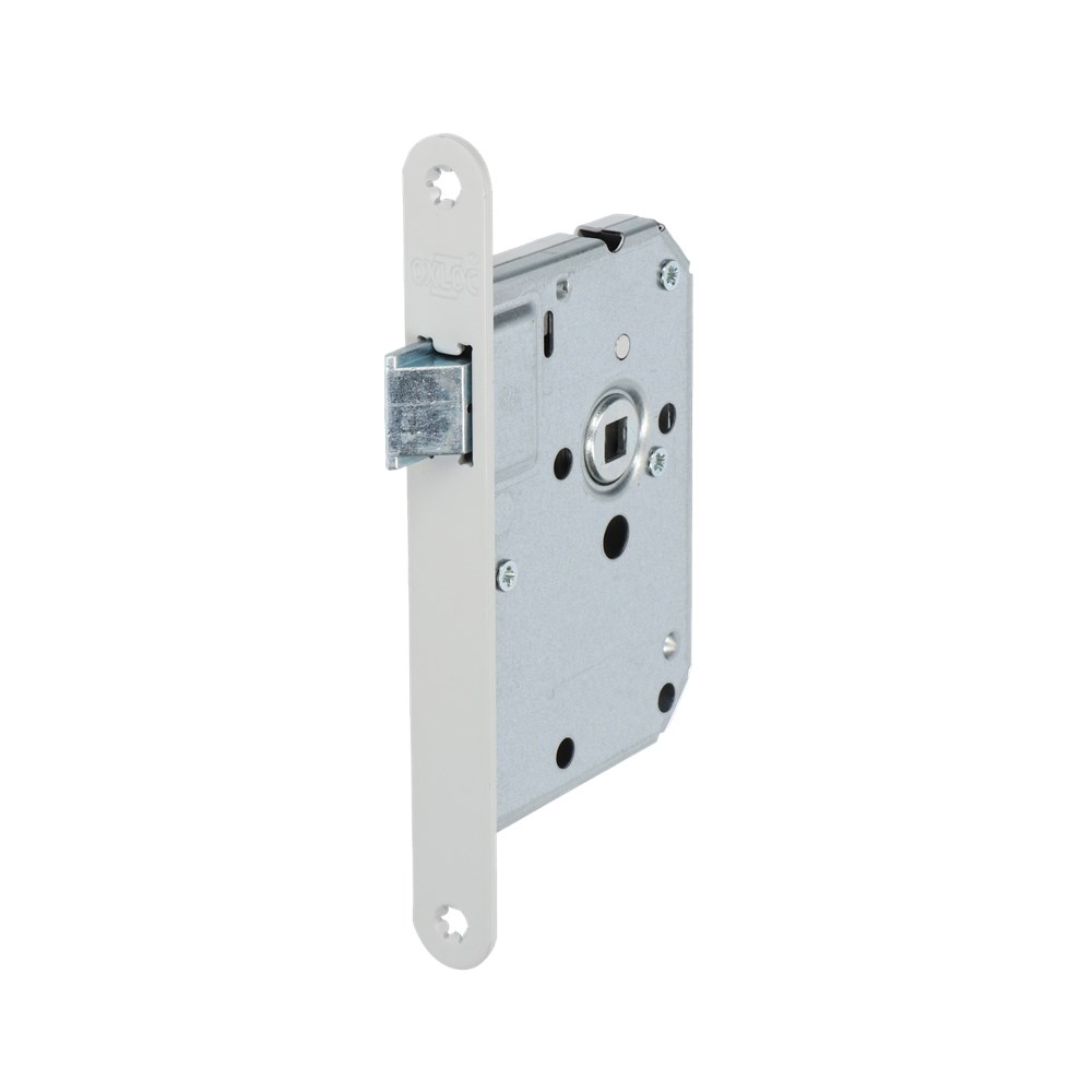 Standaard serie insteekslot, geschikt voor binnendeuren in woningbouw. Zamak dagschoot, met krukgat 8 mm. Dichte verzinkte slotkast 117x80x17 mm. Voorzien van afgeronde voorplaat 174x20x2,75 mm.