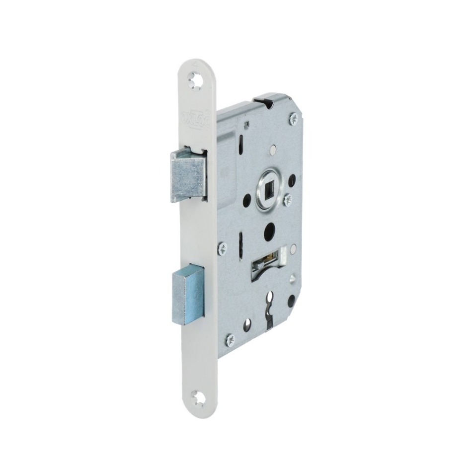 Standaard serie klavier insteekslot, geschikt voor binnendeuren in woningbouw. Zamak dag-/nachtschoten, krukgat 8 mm en kruk-/sleutelgat h.o.h. 55 mm. Dichte verzinkte kast van 117x80x17 mm. Met afgeronde voorplaat 174x20x2,75 mm.
