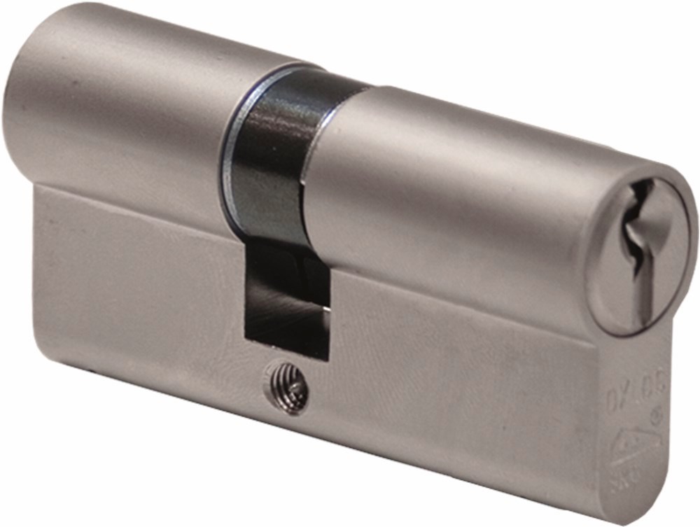 Veiligheidseuroprofielcilinder 17 mm, mat vernikkeld, 5 permutatiestiften en een boorbelemmering aan beide zijden.
