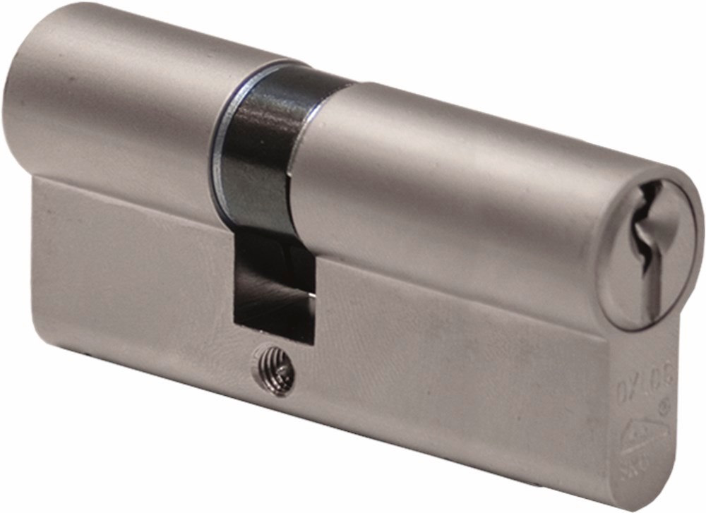 Veiligheidseuroprofielcilinder 17 mm, mat vernikkeld, 5 permutatiestiften en een boorbelemmering aan beide zijden.