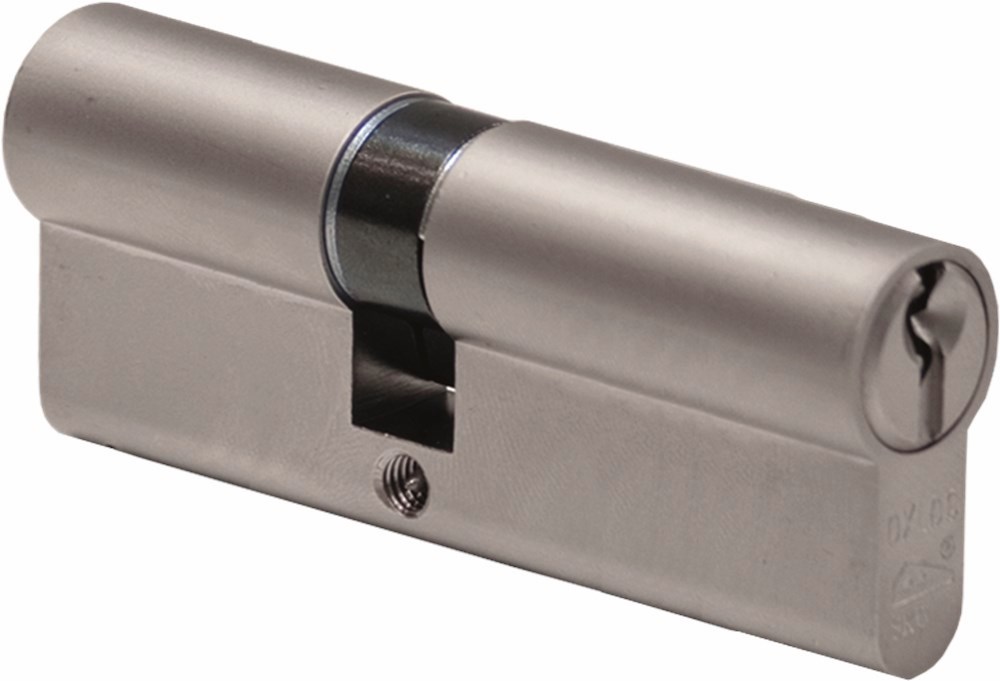 Veiligheidseuroprofielcilinder 17 mm, mat vernikkeld, 5 permutatiestiften en een boorbelemmering aan beide zijden.