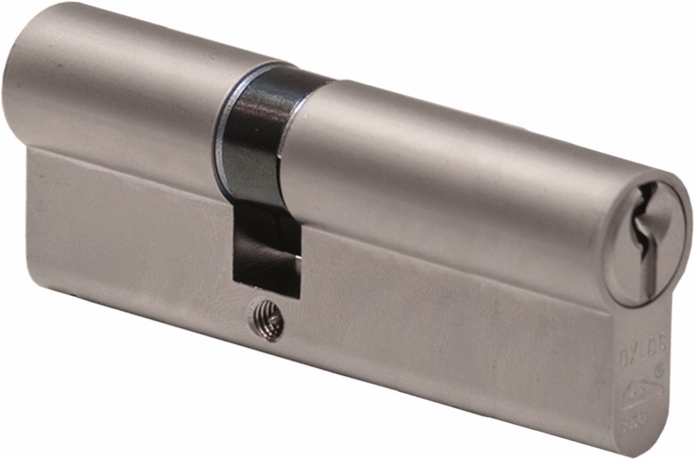 Veiligheidseuroprofielcilinder 17 mm, mat vernikkeld, 5 permutatiestiften en een boorbelemmering aan beide zijden.