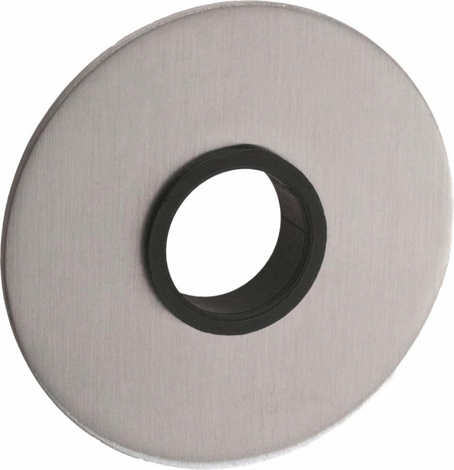 Rvs AISI 304 (A2) mat geborsteld, met onzichtbare bevestiging. Afmeting Ø 52x2 mm.