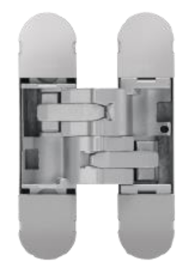 Zilver gelakt, f1, verdekt liggend scharnier. 3D-nastelbaar. Massief zamac huis en zamac scharnierdeel. Geschikt voor deurdiktes vanaf 38 mm en tot 1000 mm deurbreedte. 180 graden deuropening, zelfs bij plinten en opdeklijsten tot 15.5 mm, afhankelijk van de deurdikte. Inbouwdiepte 29 mm. Montagegemak door de symmetrische frezingen. Frezingen in het midden van het deurblad tot maximaal 46 mm deurdikte. Toepasbaar bij brandwerende deuren (FD120) conform EN 1634-1. Belastingswaarde: 80 kg : 2 scharnieren, 120 kg: 3 scharnieren.