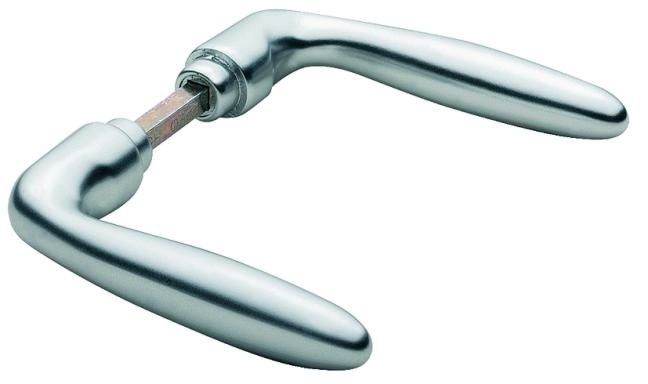 HOPPE aluminium deurkruk met HOPPE-snelstiftverbinding, combineerbaar met inbraakwerende schilden en toepasbaar in combintaie met binnendeur schilden en rozetten.