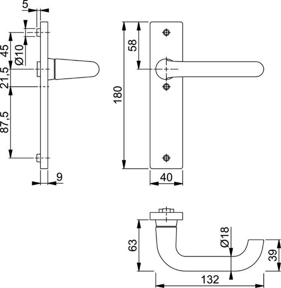 Aluminium-rechthoekig-binnendeur-kortschildgarnituur, gegoten schilden met vast/draaibaar-gelagerde deurkrukken en krukveer-mechanisme en deurkrukken met volvierkantstift, zichtbare bevestiging, inclusief bevestigingsmateriaal.