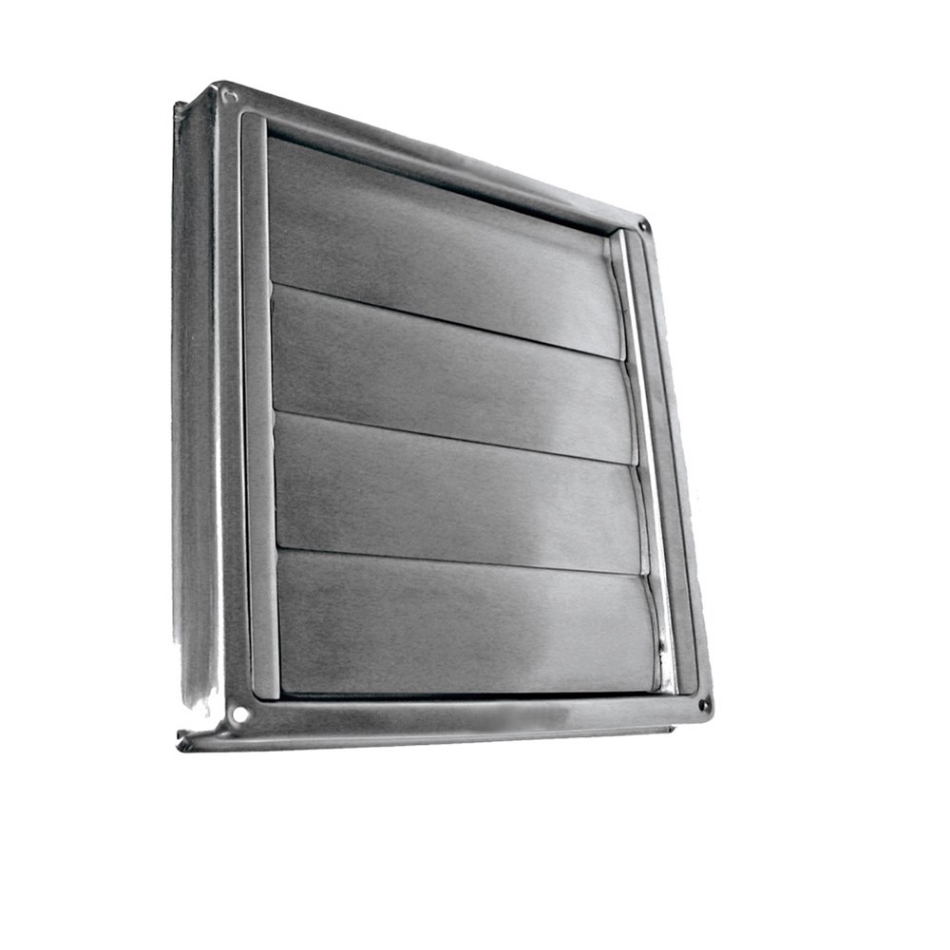Hoogwaardig RVS (AISI 304) metalen lamellenrooster (buitenrooster), inclusief rvs schroeven, spanveren en afdichtrubber. Uitvoering in Inox of zwart RAL7021.