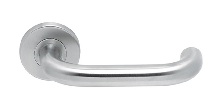 Paar deurkrukken vastgemonteerd met veer op rond rozet, met stalen onderconstructie
