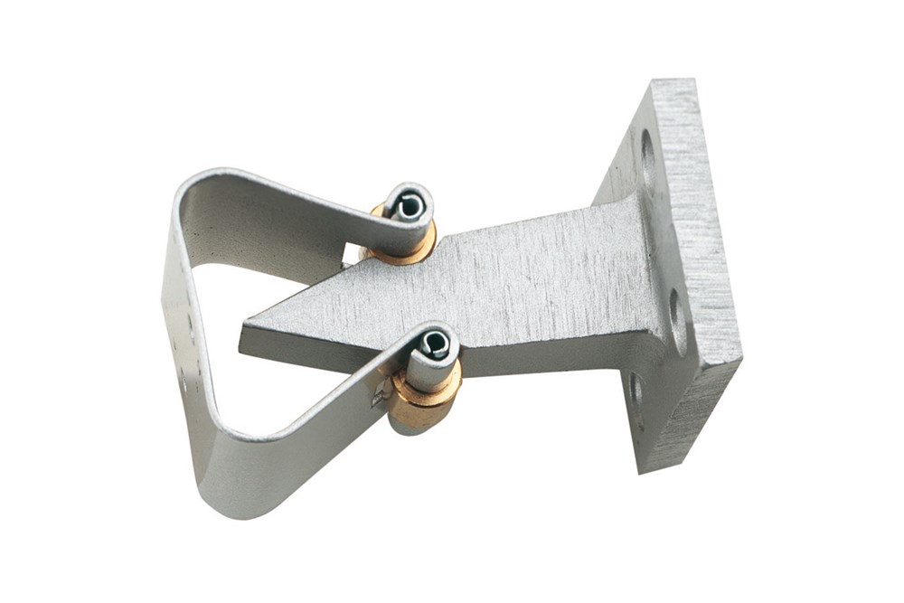 Om de deur te vergrendelen wordt deze met de grendel tegen de wandhouder gedrukt. Als de deur weer moet worden vrijgegeven, wordt hij van de beugel getrokken.