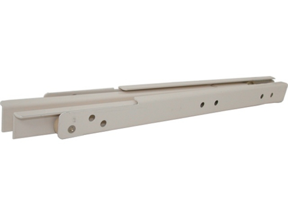 Lichtlopend, met 4 kunststof wielen. maximum draagvermogen 30 kg. wit gelakt zonder ladedrager. afmeting rail: hoogte van 23,5 mm en een dikte van 12 mm.