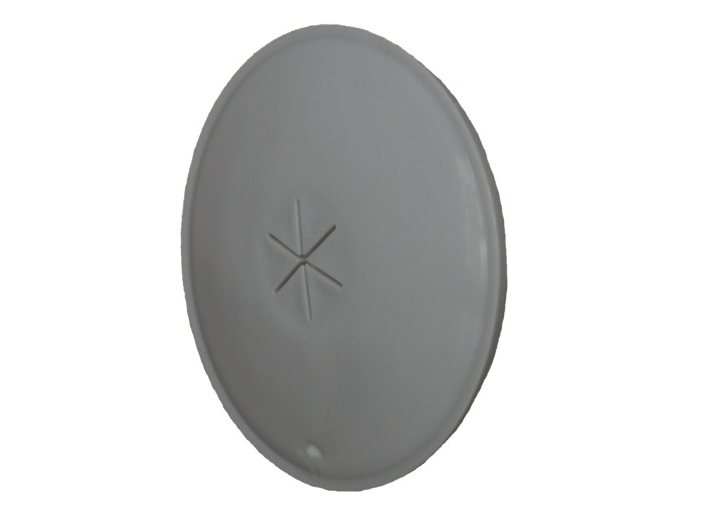 Kunststof klemschijf die over een rond spouwanker wordt geschoven om de isolatie(deken) blijvend op de juiste plek in de spouw te houden.