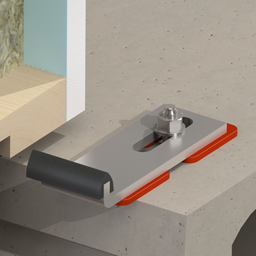 Zware metalen strip met een korte omzet (J-vorm) en één (diagonaal) sleufgat, speciaal voor onderzijde montage (in de sponning) van HSB spouwbladen op een betonnen vloer. Het J-anker wordt in het werk met drukplaten (met sleuf) op hoogte gesteld, met een spreidplug (van juiste lengte) bevestigd aan de betonnen vloer en voorzien van een bijpassend elementrubber. Deze J-ankers worden geproduceerd uit 60x6 mm of 70x6 mm sendzimir verzinkt staal, electrolytisch verzinkt uit 60x8mm en thermisch verzinkt geleverd uit staal 50x8 mm, 60x8 mm of 70x8 mm met een minimale vloeigrens S315 waardoor deze extra belasting kunnen opnemen.