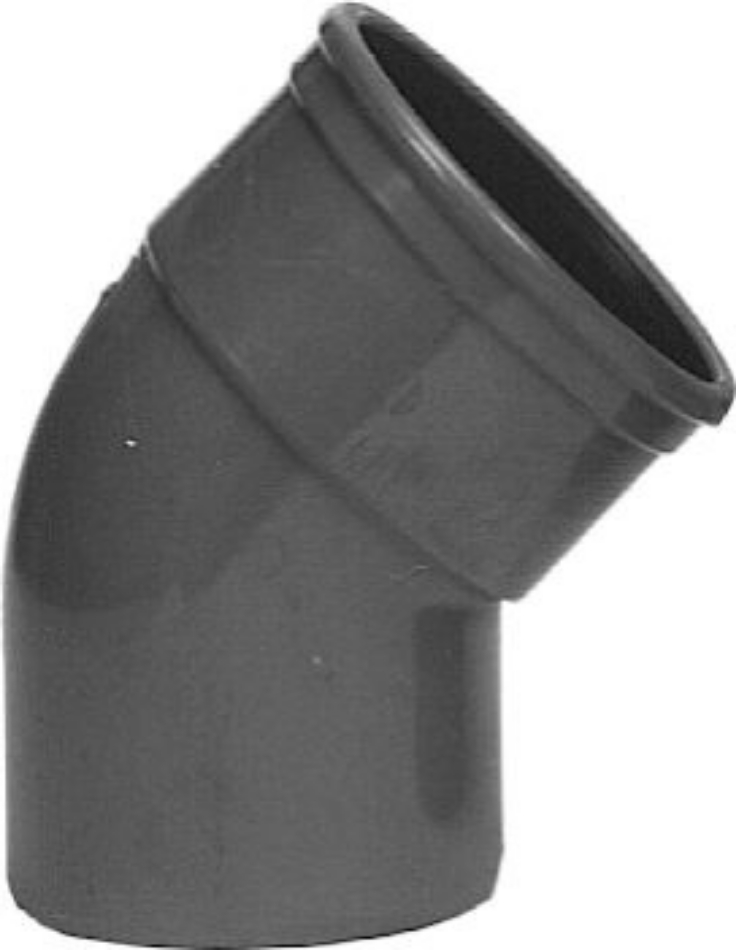 Bocht, 110 mm, 45 graden, mof/mof, grijs, pvc