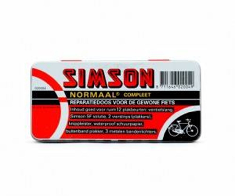 De enige echte originele Simson Reparatiedoos Normaal. Deze reparatiedoos is handig voor het repareren van vrijwel iedere traditionele fietsband zowel thuis als onderweg. Volg bij het plakken van de band de bijgeleverde instructies. De inhoud van de Simson Reparatiedoos Normaal is goed voor 12 plakbeurten en bestaat uit: 2x vierstrip pleister, 1x knippleister, 1x waterproof schuurpapier, 1x buitenbandplakker 35mm, 1x ventielslang, 1x tube solutie 10ml, 3x bandenlichters.