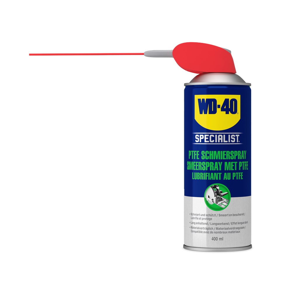 WD-40 Specialist Hoogwaardige Smeerspray met PTFE is een PTFE spray. Deze oplossing bevat PTFE dat uitstekende smering en bescherming biedt en tegelijkertijd frictie en slijtage vermindert, waardoor gereedschap en de uitrusting langer meegaan. Het laat een dun laagje achter dat langdurige smering biedt. Deze PTFE spray is goed bestand tegen vocht.