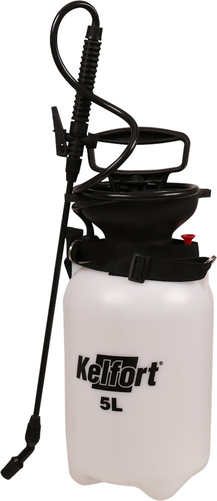 Tank van kunststof. Voorzien van oliebestendige Viton afdichting, veiligheids-/afblaasventiel, 1,5 m flexibele slang, knijpkraan met glasvezel spuitstok en kunststof sproeidop met messing insert. Sproeibeeld verstelbaar van holle kegel tot straal. Maximum werkdruk 3 bar.