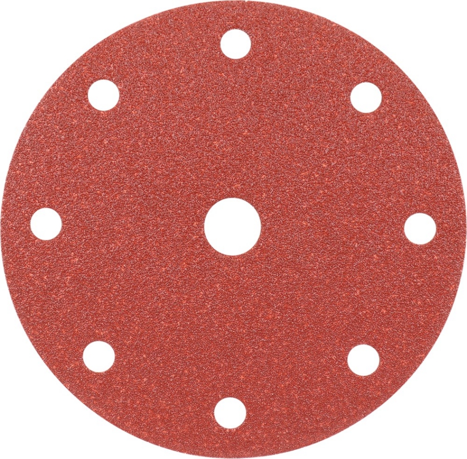 Geschikt voor het schuren van materialen zoals hout, staal en rvs. Na het schuren van staal, niet meer gebruiken op rvs, dit om roestvorming te voorkomen. Voorzien van klittenband aan de onderkant, voor snelhechtsystemen. Rood, 9 gaten en 150 mm.