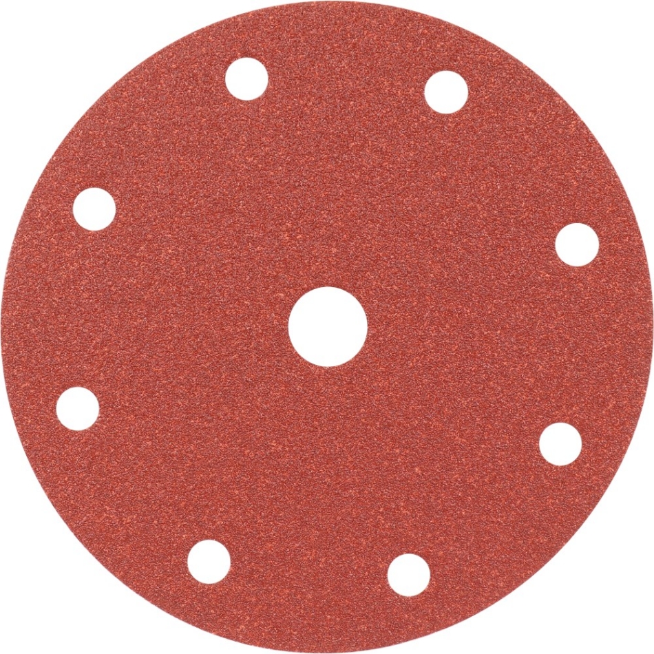 Geschikt voor het schuren van materialen zoals hout, staal en rvs. Na het schuren van staal, niet meer gebruiken op rvs, dit om roestvorming te voorkomen. Voorzien van klittenband aan de onderkant, voor snelhechtsystemen. Rood, 9 gaten en 150 mm.