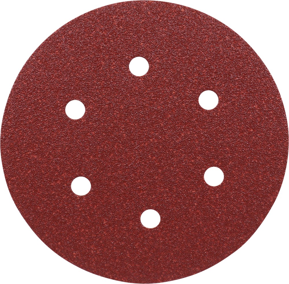 Geschikt voor GLS 5, het schuren van materialen zoals hout, staal en rvs. Na het schuren van staal, niet meer gebruiken op rvs, dit om roestvorming te voorkomen. Voorzien van klittenband aan de onderkant, voor snelhechtsystemen. Rood, 6 gaten en 150 mm.
