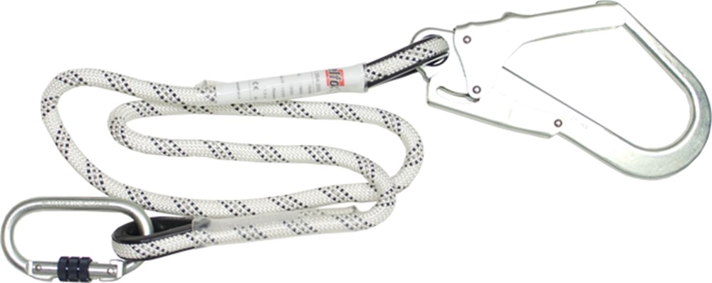 De vanglijn heeft een lengte van 1,5 m en is 11 mm dik. Compleet met karabijnhaak en steigerhaak, beide van staal. De breekkracht van de lijn is 22 kN. Volgens EN 354:2010.
