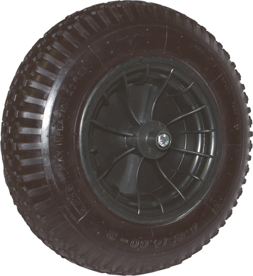 Compleet wiel met kogelgelagerde as met een diam. van 130 mm en kunststof velg met 400x80 mm 4-ply luchtband.