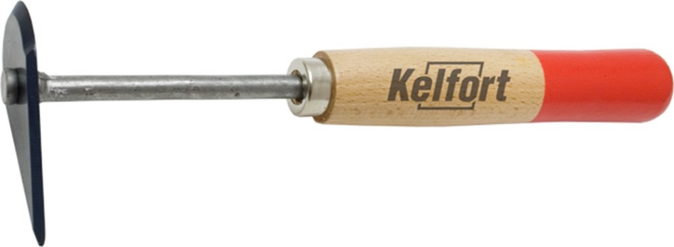Gehard en geblauwd gereedschapstalen blad met blank gelakt houten heft.