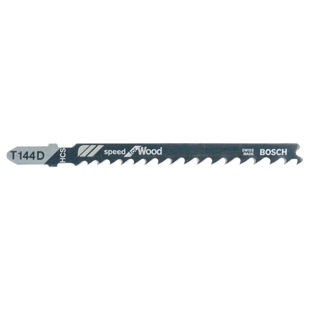 Het T 144 D Speed for Wood decoupeerzaagblad biedt snelle, rechte zaagsneden in hout. De scherp geslepen, gezette tanden zorgen voor snelle resultaten. Het HCS-blad is geschikt voor het zagen in zachthout en niet-abrasieve houtbewerkingsmaterialen. Daarnaast zorgt de grote progressieve tandafstand (4 - 5,2 mm) voor het zagen in een verscheidenheid aan houten materialen met een dikte van 5 - 50 mm.