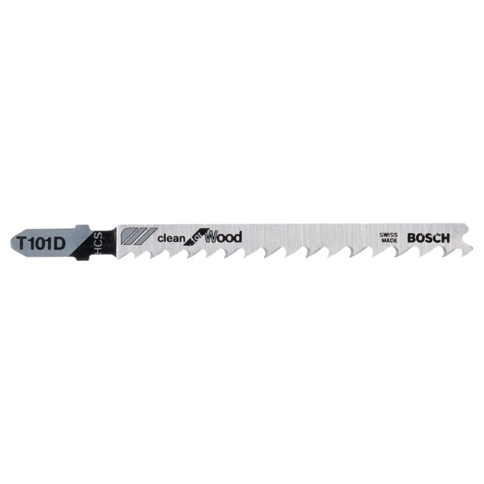 Het T 101 D Clean for Wood decoupeerzaagblad biedt gladde, rechte zaagsneden in hout. De precisiegeslepen tanden met taps geslepen lichaam zorgen voor gladde resultaten. Het blad is gemaakt van koolstofstaal en geschikt voor het zagen in zachthout en niet-abrasieve houtbewerkingsmaterialen. Het blad is uitgerust met een grote progressieve tandafstand (4 - 5,2 mm) voor het zagen in materialen van hout met een dikte van 10 - 45 mm.