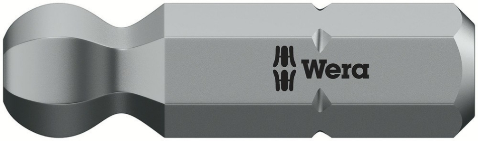 Taai-harde Wera bits voor binnenzeskantschroeven, voor universeel gebruik. Dankzij de kogelvormige aandrijfprofielen is het mogelijk om de gereedschaptas t.o.v. de hartlijn van de schroef naar buiten te verleggen of te zwenken, waardoor het ook mogelijk wordt om "om de hoek" te schroeven. 1/4" zeskant, geschikt voor houder conform DIN ISO 1173-D 6,3.