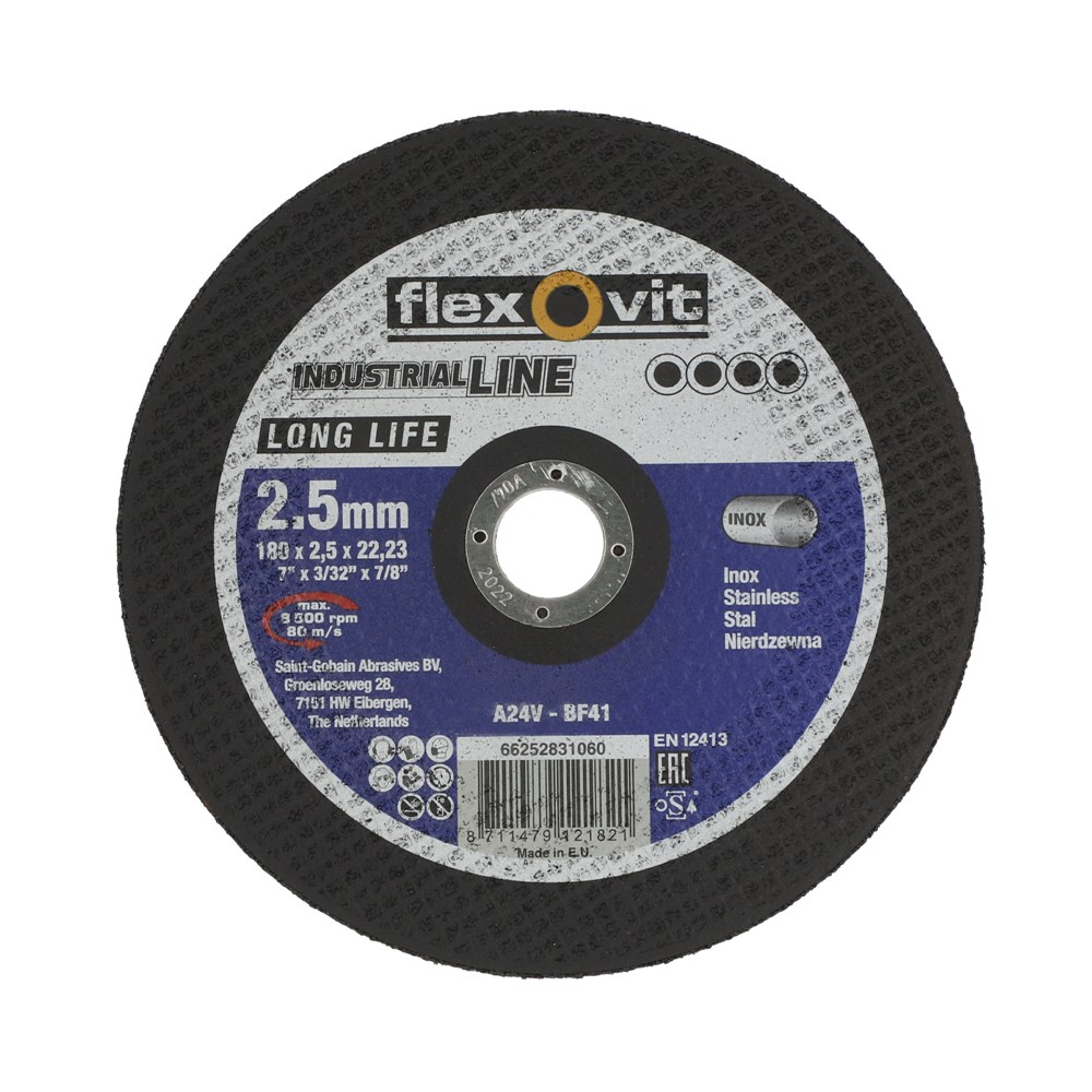Flexovit Doorslijpschijf Vlak Long Life Inox A24V T41/80 180x2,5x22