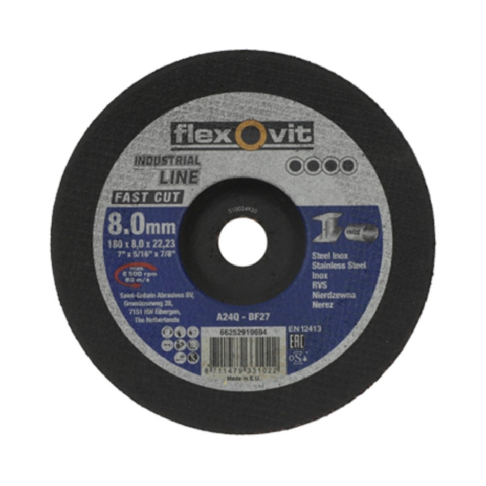 Flexovit Afbraamschijf Fast Cut Inox A24Q T27 180x8x22