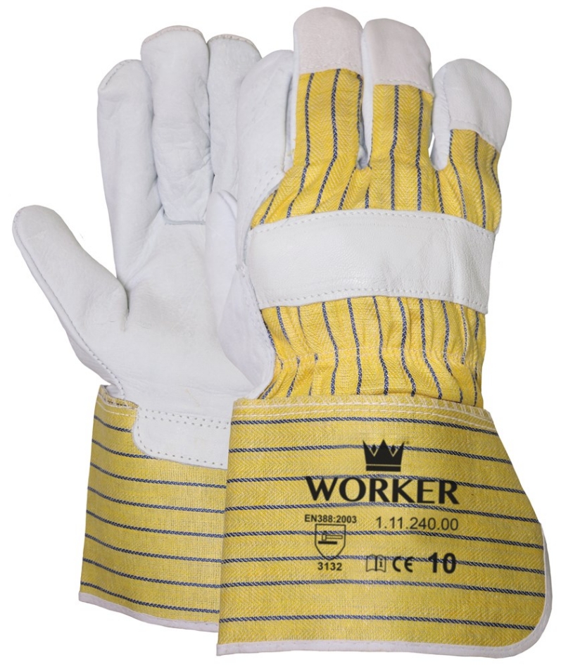 Handschoen nerfleder met 10 cm gerubberiseerde gele kap categorie 2 10