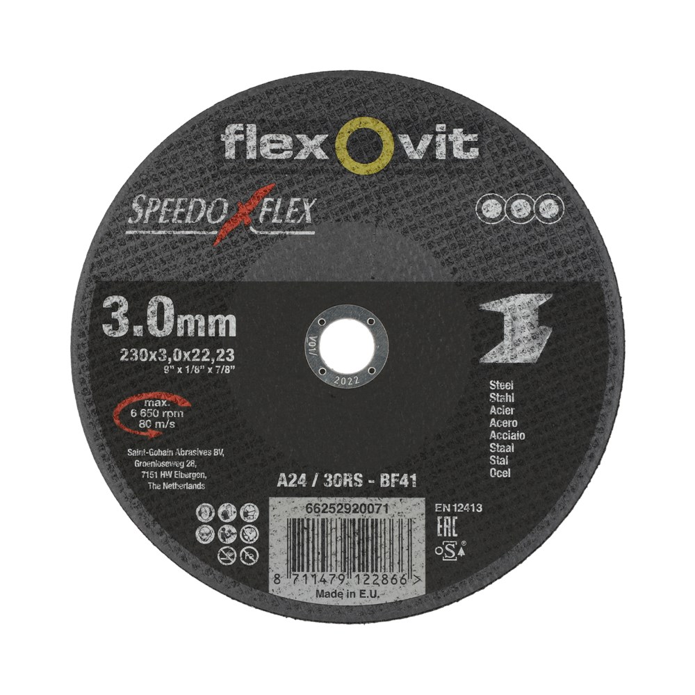 Doorslijpschijven voor het doorslijpen van staal. De Speedoflex is gemakkelijk in gebruik en heeft een goede standtijd. De schijven zijn ijzer-, zwavel- en chloorvrij.