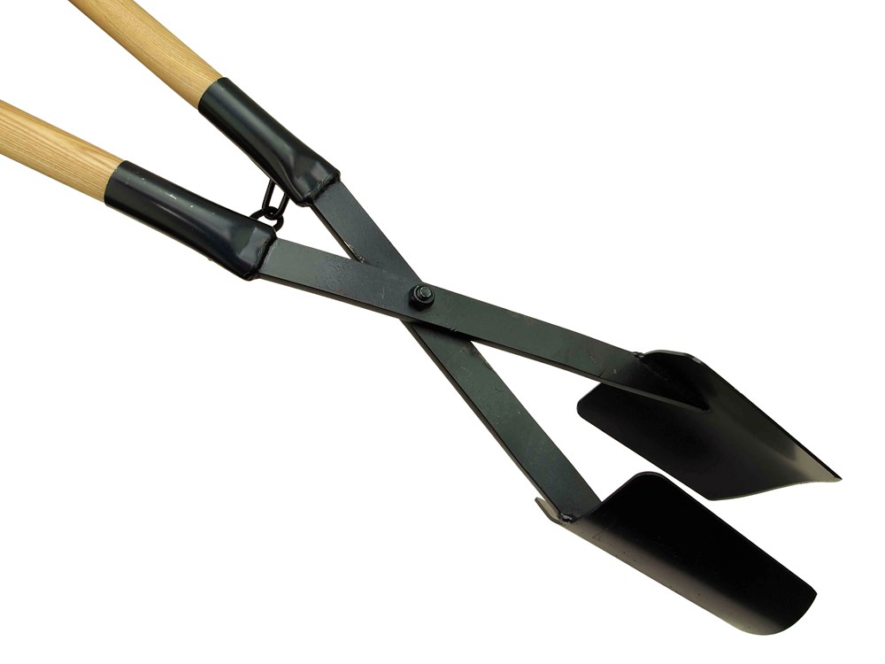 Soms is een grondboor niet het juiste gereedschap om gaten mee in de grond te boren doordat de grond te hard of te zacht is. Dan heb je een Palenzetter nodig, eigenlijk niet meer dan een dubbele schop met een scharnier. De lange stelen maken deze palenzetter geschikt voor het graven van diepere gaten.