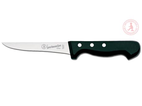 Professioneel uitbeenmes met zwarte kunststof p.o.m. handgreep. voorzien van aluminium klinknagels.Chroom vanadium staal.